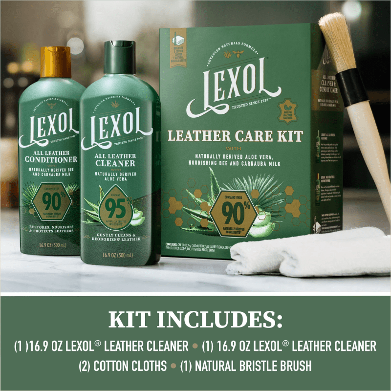 The Lexol® Advanced Naturals Leather Care Kit provides a complete, naturally derived system to clean, condition, and maintain your leather goods.